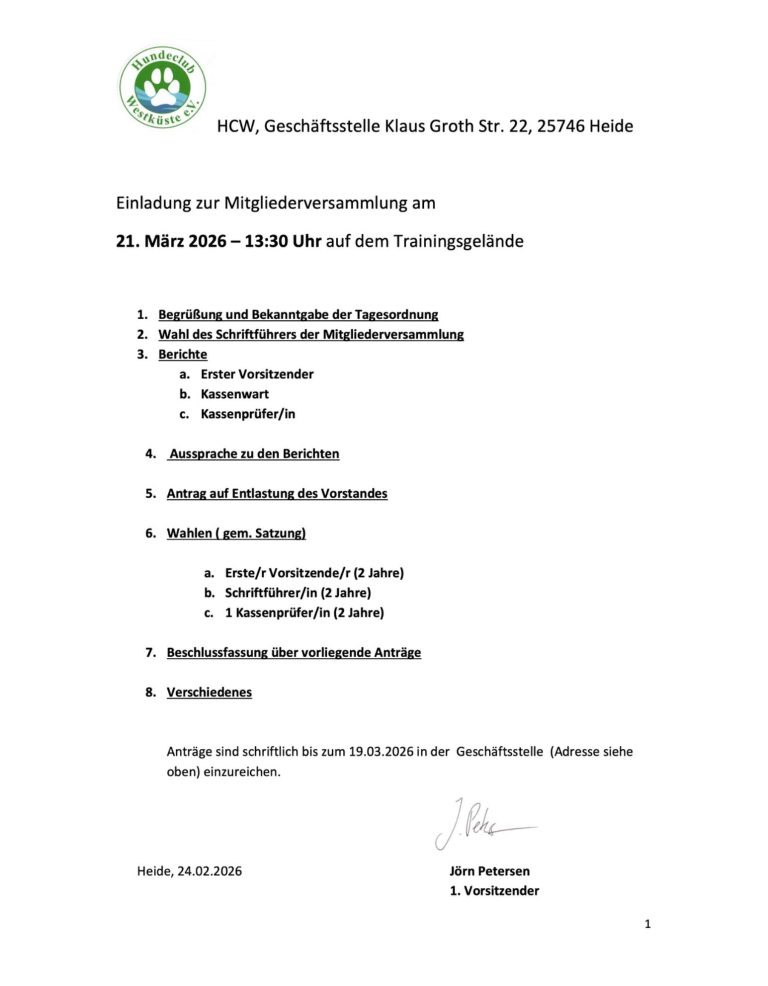 Am 21. März 2026 um 13:30 Uhr findet unsere ordentliche Mitgliederversammlung auf dem